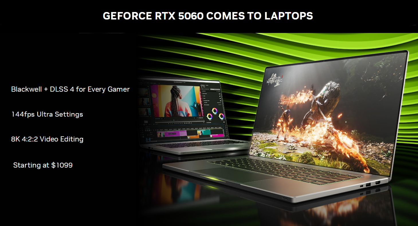 To nie koniec niespodzianek. NVIDIA zapowiedziała również, że laptopy z układem GeForce RTX 5060 trafią do sprzedaży w tym samym terminie – 19 maja. Modele z tym GPU będą dostępne w cenie zaczynającej się od około 5555 zł. Mobilny RTX 5060 oparty jest na architekturze NVIDIA Blackwell, co oznacza wykorzystanie najnowszych rdzeni RT i Tensor oraz szybkiej pamięci GDDR7. Sama jednostka posiada 3328 rdzeni CUDA oraz także została wyposażona w 8 GB VRAM.