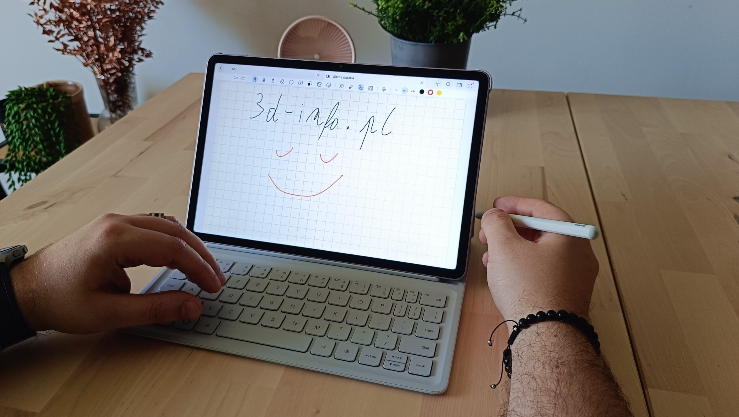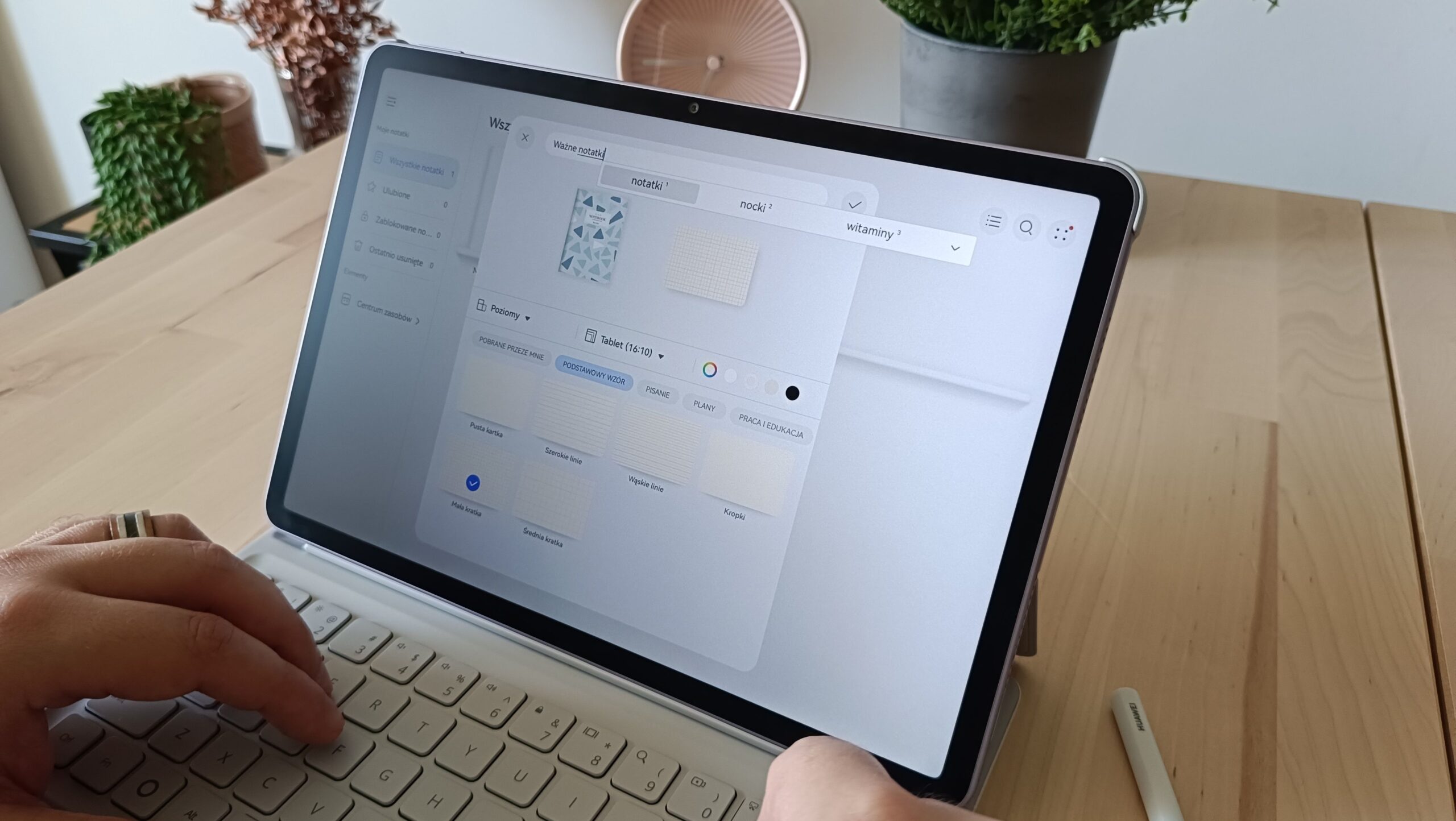 Kluczem do wszystkiego jest matowy ekran PaperMatte, który daje odczucie zbliżone do pisania po prawdziwym papierze. Już na pierwszy rzut oka widać, że powłoka doskonale redukuje odblaski, co jest kolosalną zaletą, gdy pracujemy w jasnym świetle. Natomiast rysik HUAWEI M-Pencil 3. generacji doskonale współpracuje z ekranem, oferując niskie opóźnienie i wysoką czułość na nacisk i pochylenie. Efekt jest niesamowicie naturalny, przyznam się, że nie przepadam za pisaniem na tabletach, bo na większości rysik się nienaturalnie ślizga, czuć, że śmiga się jednak po szkle. W przypadku tabletu Huawei tego nie ma i można spokojnie robić notatki, szkice czy tworzyć cyfrowe bazgroły.