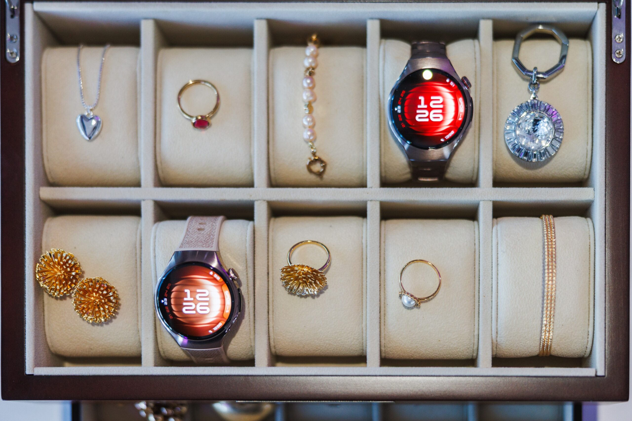 - Huawei Watch 5 Elite 42 mm (piaskowozłoty) z obudową ze stali szlachetnej 904L i tytanową bransoletą,
