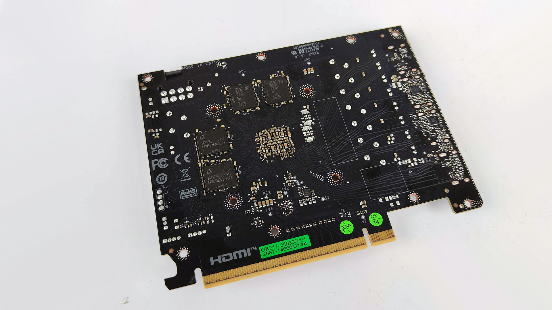Ponownie pierwsze co rzuciło mi się w oczy, po wyjęciu karty z pudełka to wielkość konstrukcji KFA2. Niby miałem kontakt już z RTX 5060 Ti i wiem, jak niewielkie potrafi być PCB tej karty. Jednak wciąż trudno mi się do tego przyzwyczaić, zwłaszcza gdy topowe modele kart NVIDII potrafią ważyć po 3 kg i mierzyć ponad 34 cm. A tym razem w rękach trzymałem kartę ważącą zaledwie 700 gramów! Wymiary karty również imponują, ale raczej swoim minimalizmem. Konstrukcja KFA2 ma zaledwie 24,7 cm długości oraz standardową wysokość 11,5 cm. Co ważne karta w naszej obudowie zajmuje zaledwie 2 sloty PCIe. Idealnie zatem nadaje się do wszystkich buildów SFF.