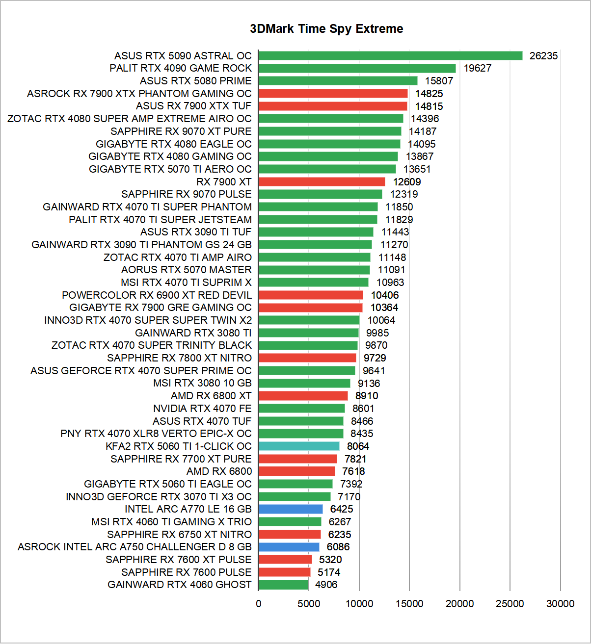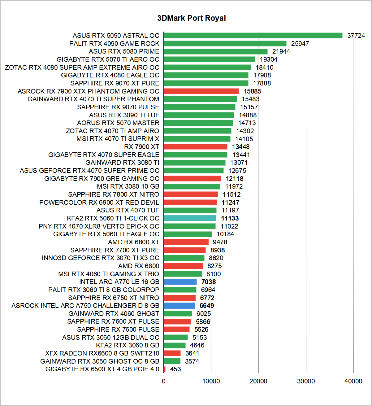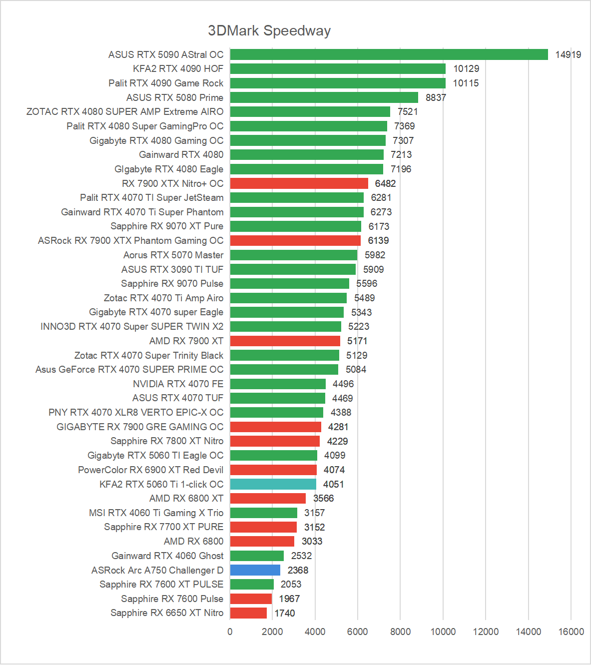 Zanim jednak omówimy rezultaty uzyskane w najnowszych czy najbardziej wymagających grach zacznijmy już standardowo od sprawdzenia wydajności w testach 3DMark. Warto zaznaczyć, że dwa benchmarki wchodzące w skład tego popularnego programu do sprawdzania wydajności w pełni obsługują Ray Tracing. Mowa oczywiście o Port Royal oraz Speedway, dzięki którym poznamy wydajność NVIDIA GeForce RTX 5060 Ti w odniesieniu do innych modeli. W przypadku pozostałych testów Time Spy oraz Fire Strike na ustawieniach Extreme skupiłem się wyłącznie na rezultatach osiąganych przez samą kartę graficzną, tak zwany “GPU Score”.