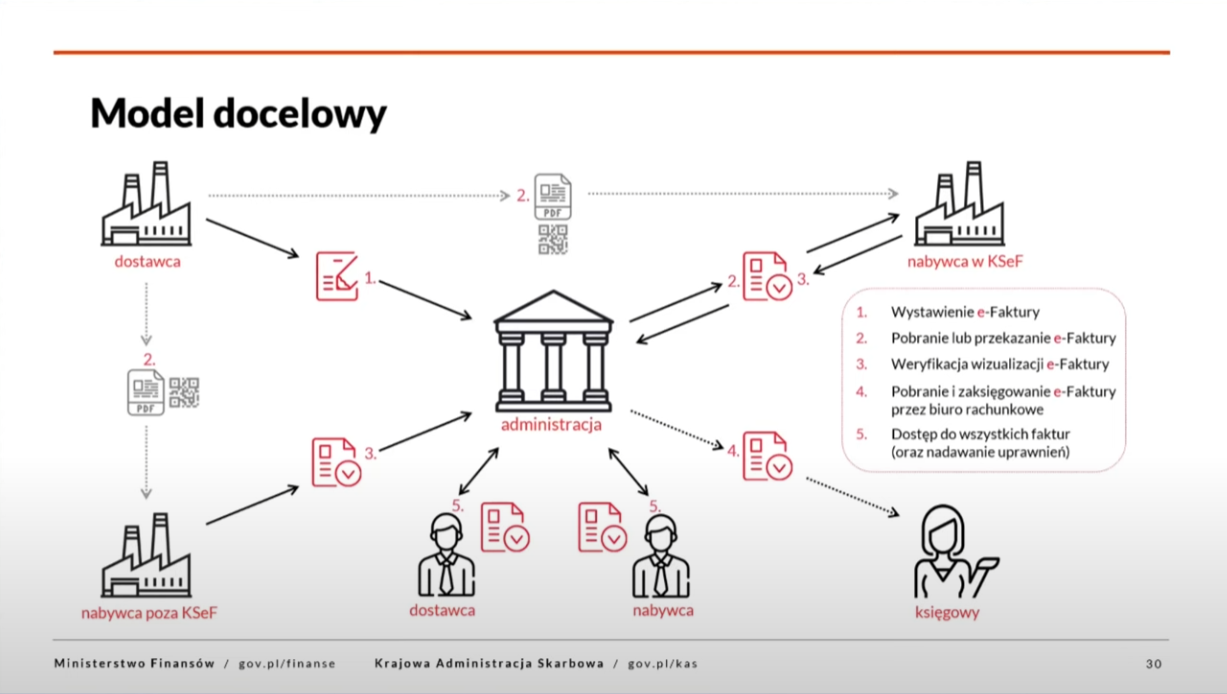 W praktyce oznacza to, że zamiast wysyłać kontrahentowi PDF czy drukowany dokument, przedsiębiorca będzie przekazywał go przez system rządowy, a faktura zostanie tam zapisana w tzw. formacie ustrukturyzowanym (XML). Dzięki temu nie trzeba jej archiwizować samodzielnie. Nie zginie w mailach i będzie bezpiecznie przechowywana przez 10 lat, dostępna w każdej chwili dla obu stron transakcji. Jednocześnie system daje administracji pełną kontrolę nad obiegiem dokumentów, co ma na celu uszczelnienie systemu podatkowego.
