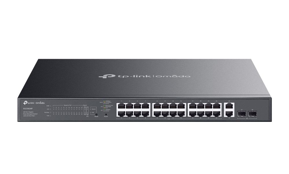 ES228GMP – największy z zaprezentowanych modeli, wyposażony w 26 gigabitowych portów, w tym 24 porty zgodne z PoE+ (802.3at/af, do 30W na port). Całkowita moc zasilania 384W gwarantuje bezproblemowe podłączenie i zasilanie urządzeń takich jak punkty dostępowe Wi-Fi, kamery CCTV czy telefony IP. Dwa dodatkowe porty RJ45 oraz dwa porty SFP zapewniają stabilną i szybką transmisję danych.