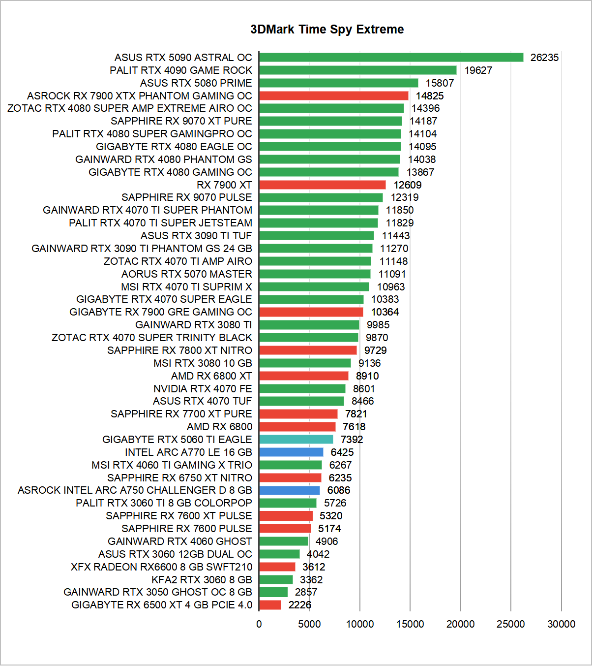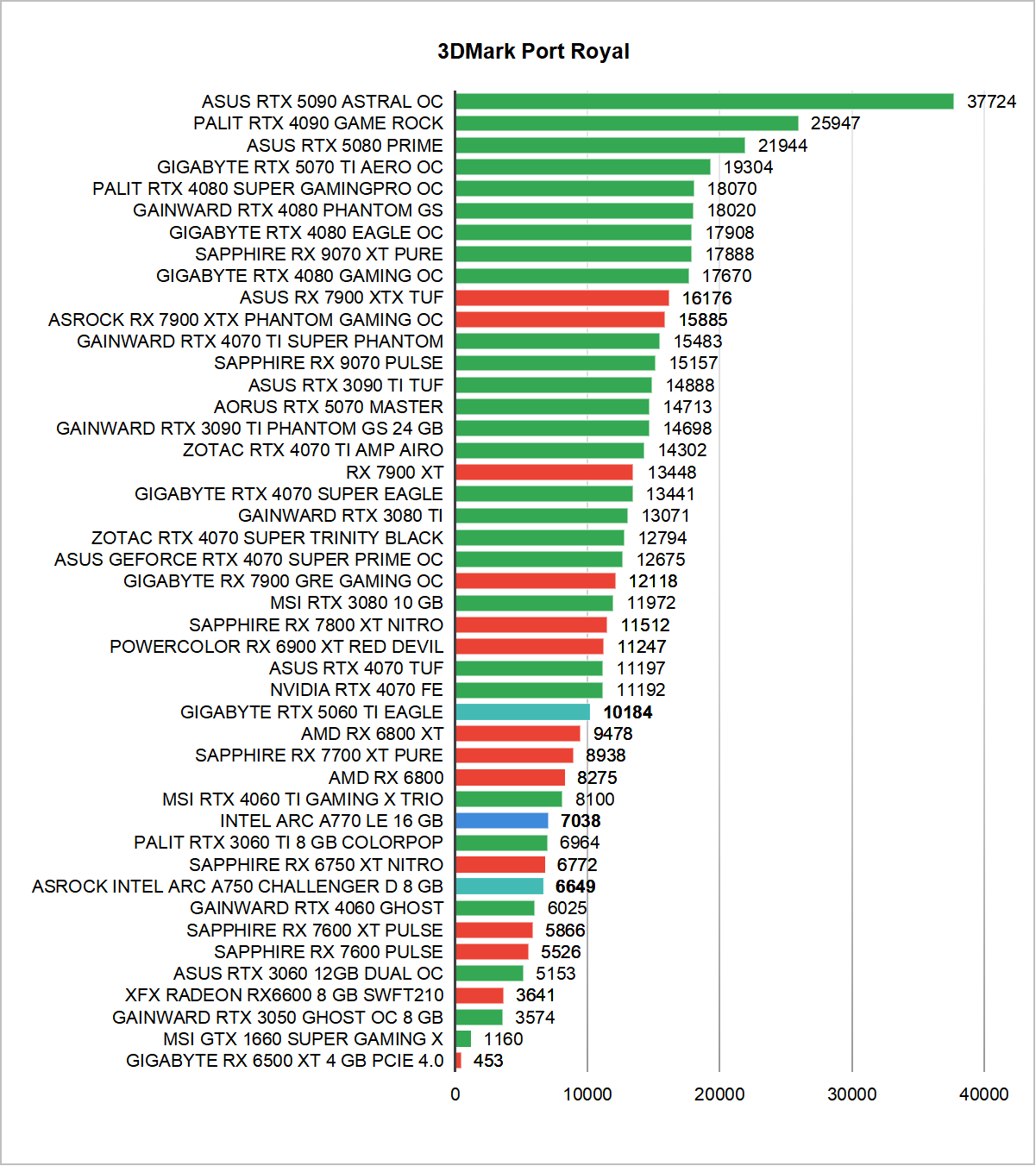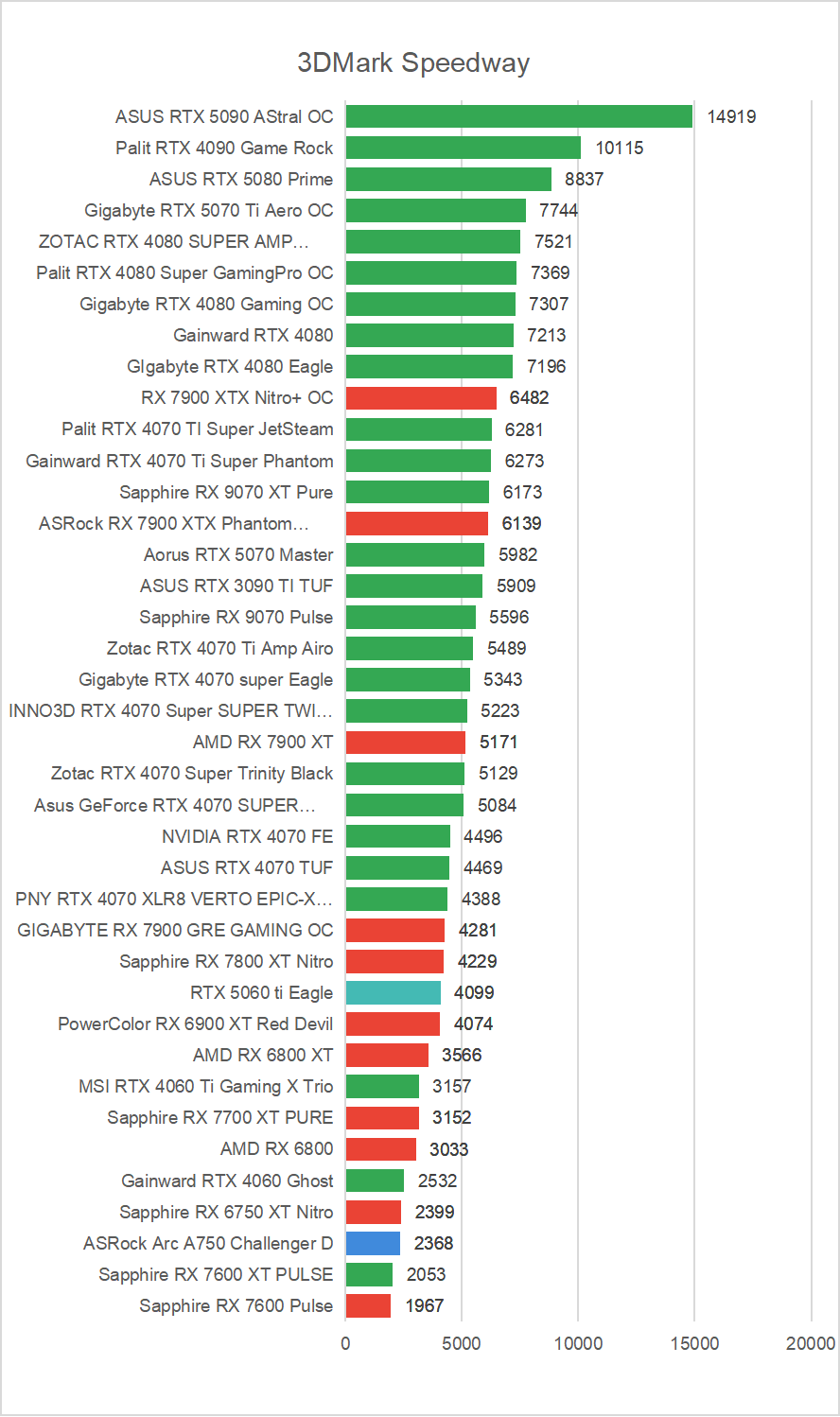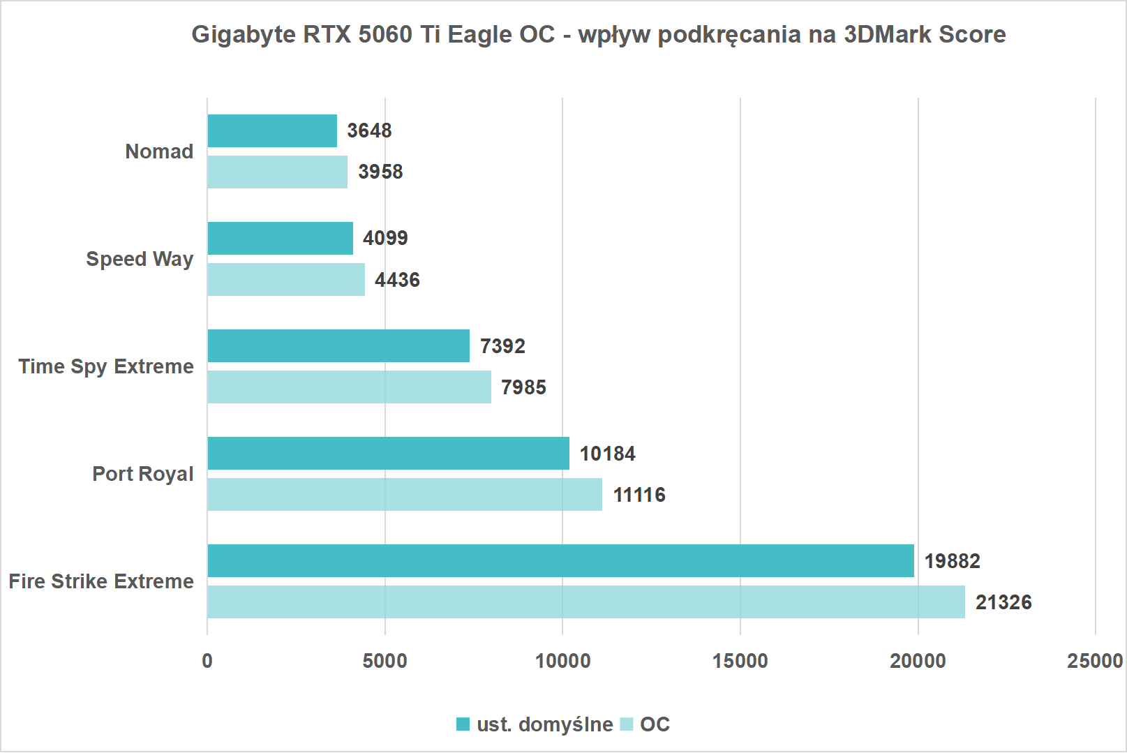 Zanim jednak omówimy rezultaty uzyskane w najnowszych czy najbardziej wymagających grach zacznijmy już standardowo od sprawdzenia wydajności w testach 3DMark. Warto zaznaczyć, że dwa benchmarki wchodzące w skład tego popularnego programu do sprawdzania wydajności w pełni obsługują Ray Tracing. Mowa oczywiście o Port Royal oraz Speedway, dzięki którym poznamy wydajność NVIDIA GeForce RTX 5060 Ti w odniesieniu do innych modeli. W przypadku pozostałych testów Time Spy oraz Fire Strike na ustawieniach Extreme skupiłem się wyłącznie na rezultatach osiąganych przez samą kartę graficzną – tak zwany “GPU Score”.