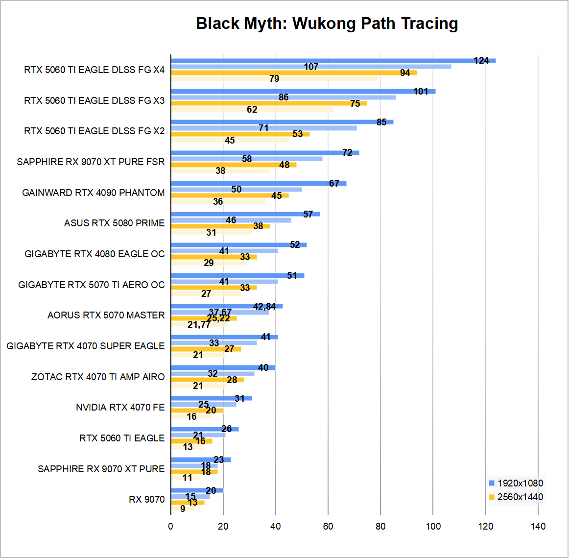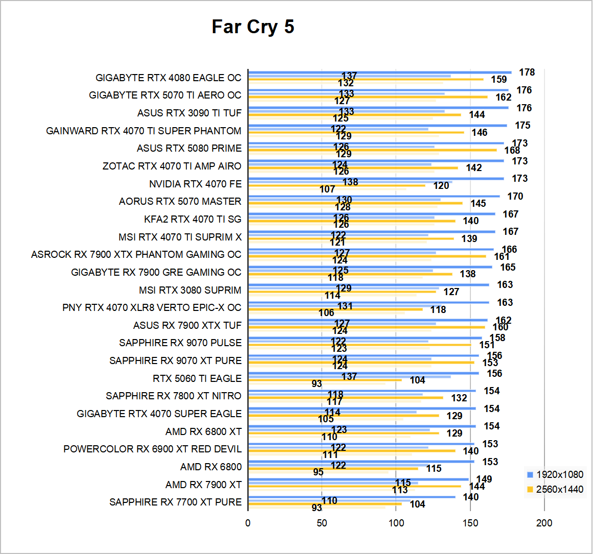 Różnica w wydajności w grach nie jest już tak spektakularna, z małymi wyjątkami. Dla przykładu w GTA 5 nowy GeForce jest zauważalnie szybszy od swojego poprzednika. Wynika to zapewne z uprawnień architektury Blackwell do obsługi starszych API jak DirectX 11, o których już jakiś czas temu wspominałem. To, co cieszy, że nawet po zwiększeniu rozdzielczości do 1440p, w większości sprawdzanych gier mogłem liczyć na płynną rozgrywkę, mimo dość wysoko ustawionych ustawień graficznych.