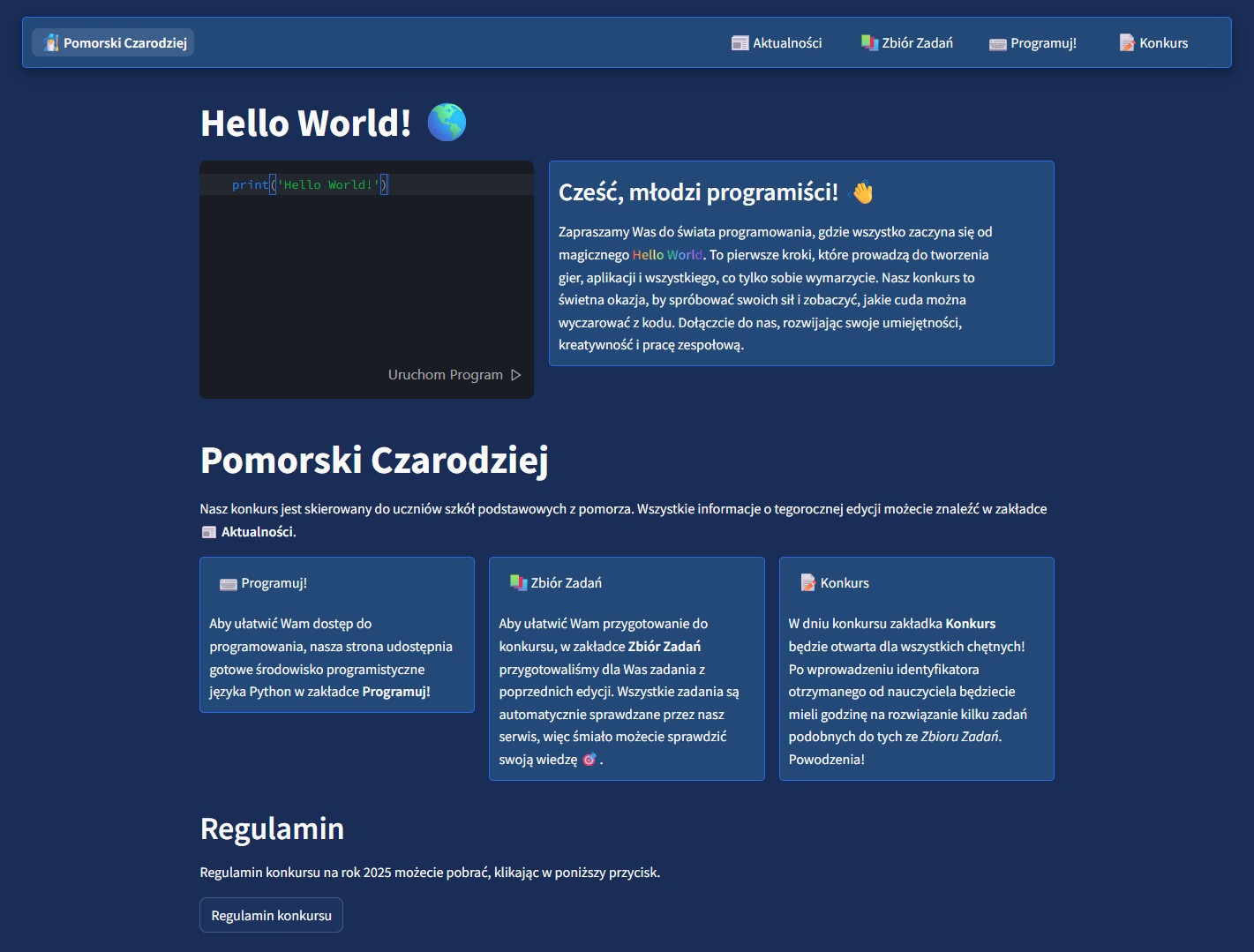 Konkurs skierowany jest do uczniów klas 4-6 oraz 7-8 szkół podstawowych i od lat organizowany jest przez wolontariuszy Intela. Jego celem jest popularyzacja programowania wśród najmłodszych oraz budowanie społeczności młodych entuzjastów technologii. Co ważne, uczestnicy mogli przygotowywać się dzięki platformie edukacyjnej pomorskiczarodziej.pl, stworzonej przez pracowników Intela. Platforma oferuje interaktywny edytor Pythona online oraz dostęp do zadań z poprzednich edycji, co pozwala na praktyczne doskonalenie umiejętności programistycznych.