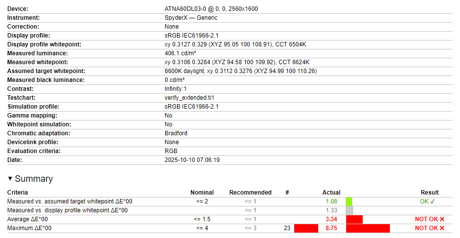 Czerń jest tu absolutna, a co za tym idzie, kontrast jest nieskończony. Kolory są niewiarygodnie nasycone i wręcz „wyskakują” z ekranu, co potwierdzają testy. Pokrycie przestrzeni barwnych to 100% sRGB, 97,2% Adobe RGB i aż 99,8% DCI-P3. To wyniki godne profesjonalnego monitora dla grafików. Zmierzona luminancja w trybie SDR sięga 406 cd/m², a sam ekran posiada certyfikat DisplayHDR 500. Niestety, rzeczywista implementacja HDR w systemie Windows, jak to zwykle bywa, wciąż pozostawia nieco do życzenia.