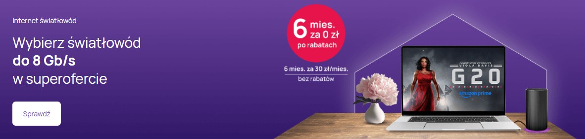 Jeżeli zdecydujesz się na umowę na 24 miesiące i dokupisz do swojego abonamentu Play internet światłowodowy z prędkością do 600 Mb/s, 1 Gb/s lub nawet 8 Gb/s wraz z telewizją, przez pierwsze 8 miesięcy nie zapłacisz ani złotówki za usługi domowe. To doskonała okazja, by zmodernizować swój domowy internet i telewizję bez obciążania budżetu.