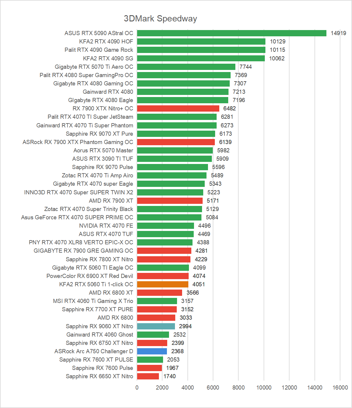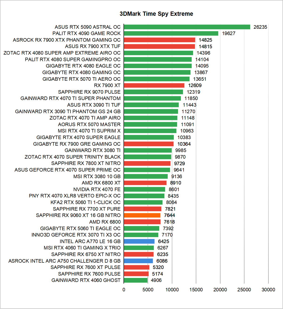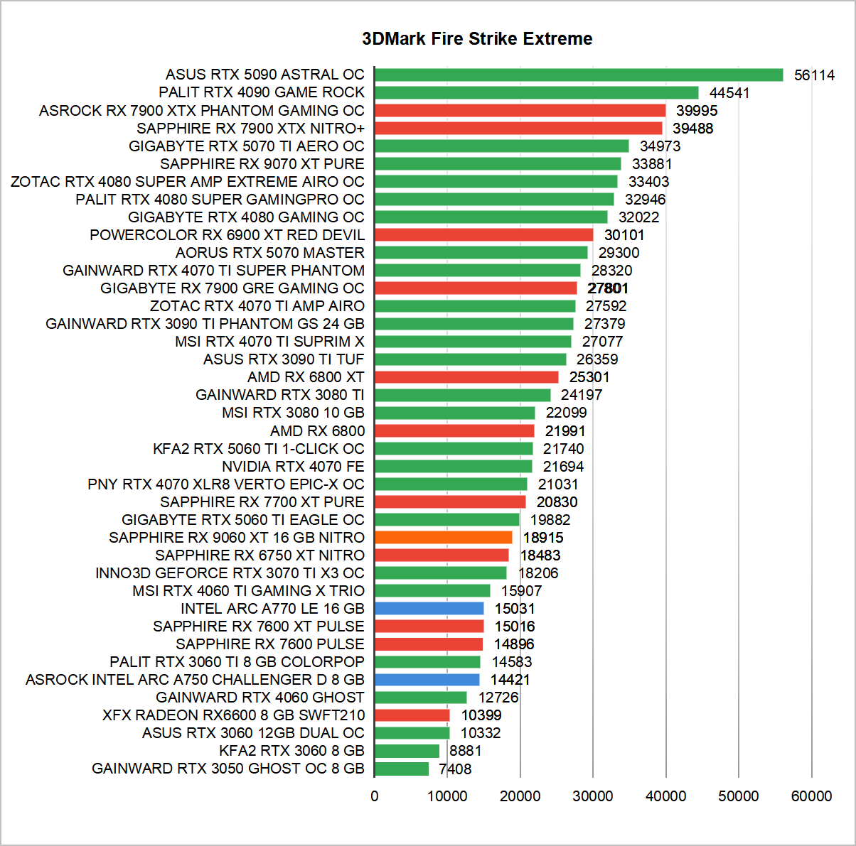 Pierwsza niespodzianka? Tak, choć nie taka, jakiej się spodziewałem. RX 9060 XT wygrywa z RTX 5060 TI tylko w teście Time Spy Extrene czy Nomad. Co prawda oba benchmarki wykorzystują DirectX 12, ale nie korzystają z Ray Tracingu. Jak można było przewidzieć NVIDIA w tym aspekcie dalej górą. Zwracam waszą uwagę na rezultat z Fire Strike, starszego testu bazującego na DX11. Przywykłem poniekąd, że Radeony zawsze były szybsze w tym scenariuszu. Jak już nie raz powtarzałem, karty Blackwell znacząco poprawiły wydajności i w tym aspekcie, dzięki temu GeForce ponownie wygrywa. A jak sytuacja wygląda w grach?