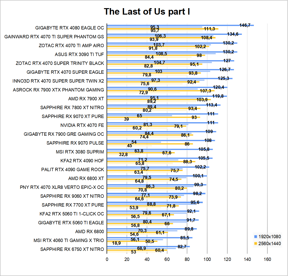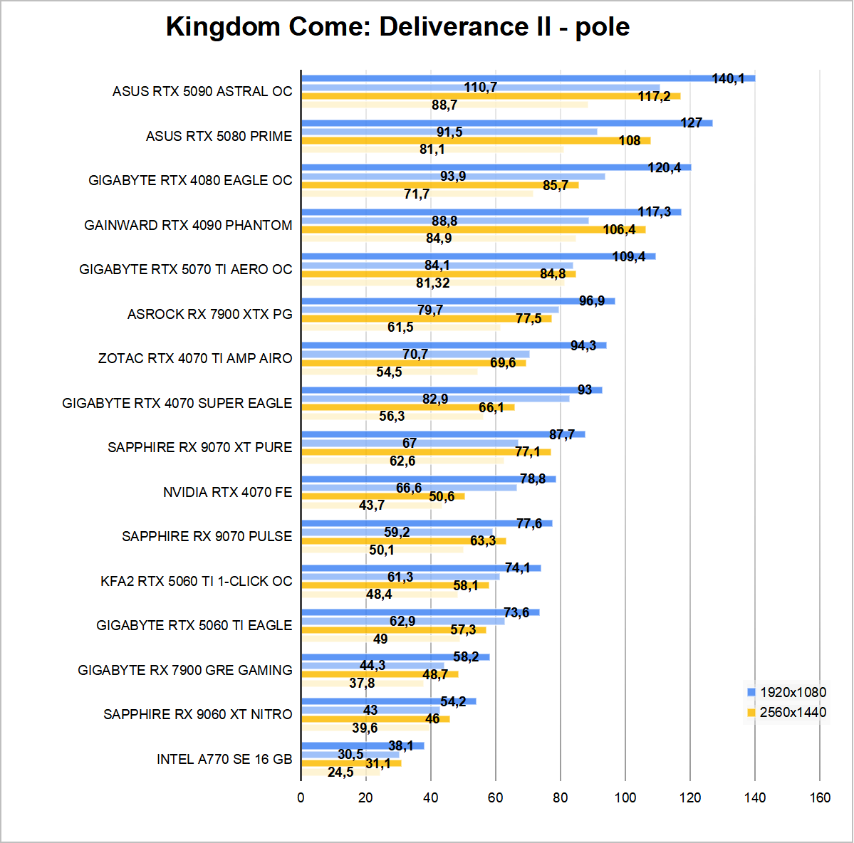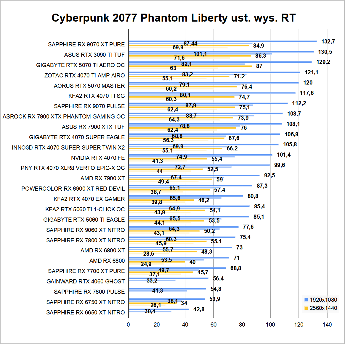 Testy w grach potwierdzają już to, co zauważyliśmy wcześniej. O ile testowany tytuł nie obsługuje technologii śledzenia promieni, wydajność RX 9060 XT ociera się o RTX 5060 TI. Niestety gier, w których RX jest szybszy, jest bardzo mało, z drugiej strony różnice są na tyle małe, żebyśmy szczególnie musieli zwrócić na nie uwagę. Jedyne co mnie zaskoczyło, to jak słabo wypada nowy Radeon w portach gier z Playstation. Można powiedzieć, że gry te były takim ostatnim bastionem AMD. Często bez ray tracingu, za to dobrze zoptymalizowane pod architekturę RDNA, bo w końcu ta również jest obecna w konsoli. Dobrze to obrazuje choćby wynik w Horizon Forbidden West gdzie karta czerwonych przegrywa z RTX. No ale przynajmniej RADEON jest tańszy nie?