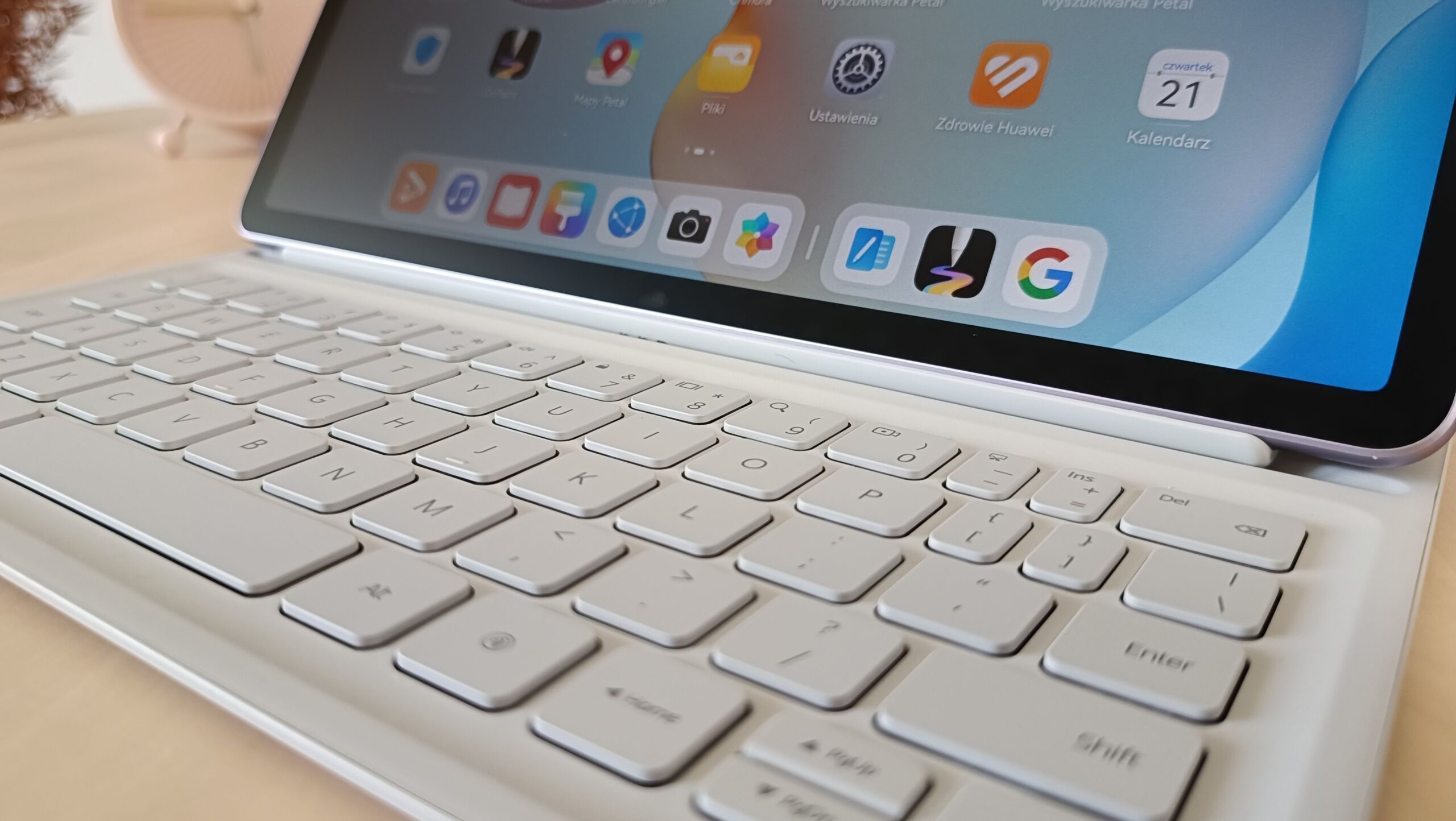 Dołączona klawiatura to naprawdę przemyślany dodatek. Dzięki magnesom połączenie z urządzeniem jest natychmiastowe, a cała konstrukcja jest zaskakująco solidna. Pisanie na tej klawiaturze to czysta przyjemność, a skok klawiszy o 1,5 mm zapewnia wygodę porównywalną z laptopem.