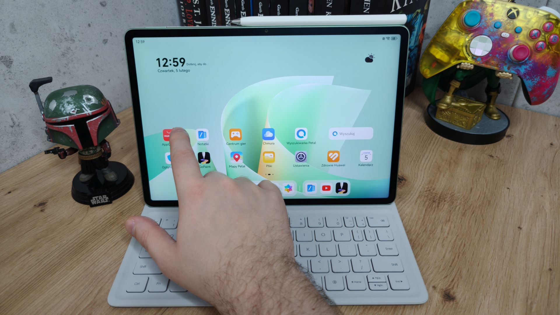 Huawei mocno promuje standard NearLink i po testach muszę przyznać – to ma sens. Klawiatura dołączona do tabletu łączy się z nim błyskawicznie, a opóźnienia, które czasem irytują w klasycznym Bluetooth, tutaj praktycznie nie istnieją. Co ważne, klawiatura jest rozłączalna. Możecie postawić tablet na biurku, a klawisze położyć na kolanach i pisać dalej. To niby drobiazg, ale w podróży czy na ciasnym stoliku w kawiarni, to rozwiązanie ratuje sytuację. Sam rysik M-Pencil (3. generacji) obsługuje ponad 10 000 poziomów nacisku, co w tej półce cenowej jest wręcz niespotykane.