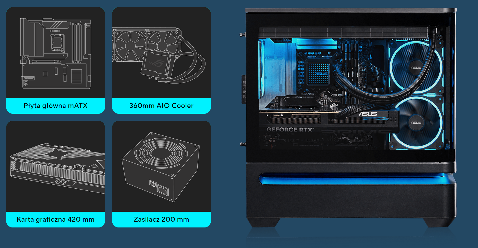 3. obsługa chłodnic AIO do 360 mm i GPU do 420 mm