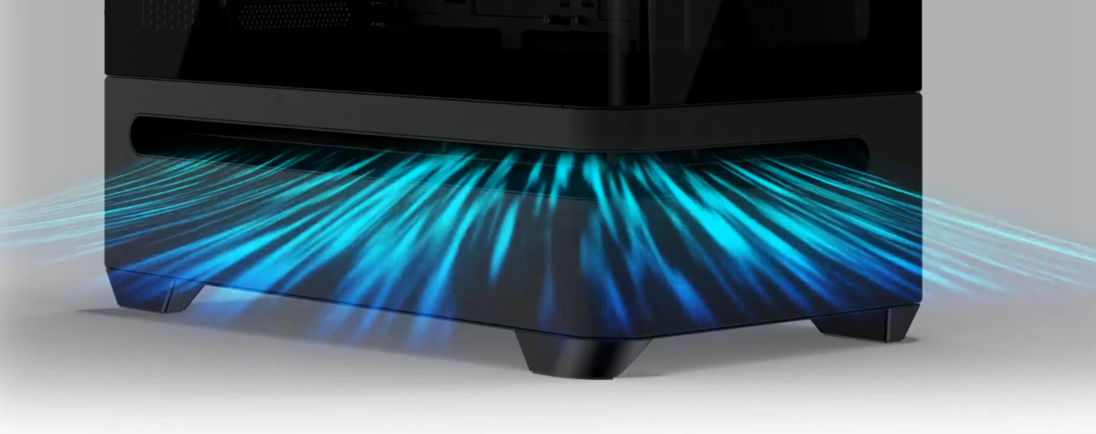 Gdzie więc leży jej siła? W unikalnym designie i absolutnym braku kompromisów. Największym atutem jest tu unikalny system chłodzenia oparty na zasadzie „komina”. Powietrze zasysane jest od spodu przez szczelinę wlotową i naturalnie wędruje ku górze. Jak pokazały testy, w efekcie nawet najmocniejsze GPU zachowuje niskie temperatury, dosłownie „oddychając” świeżym powietrzem. To rozwiązanie, które działa, o ile tylko poprawnie skonfigurujemy przepływ.
