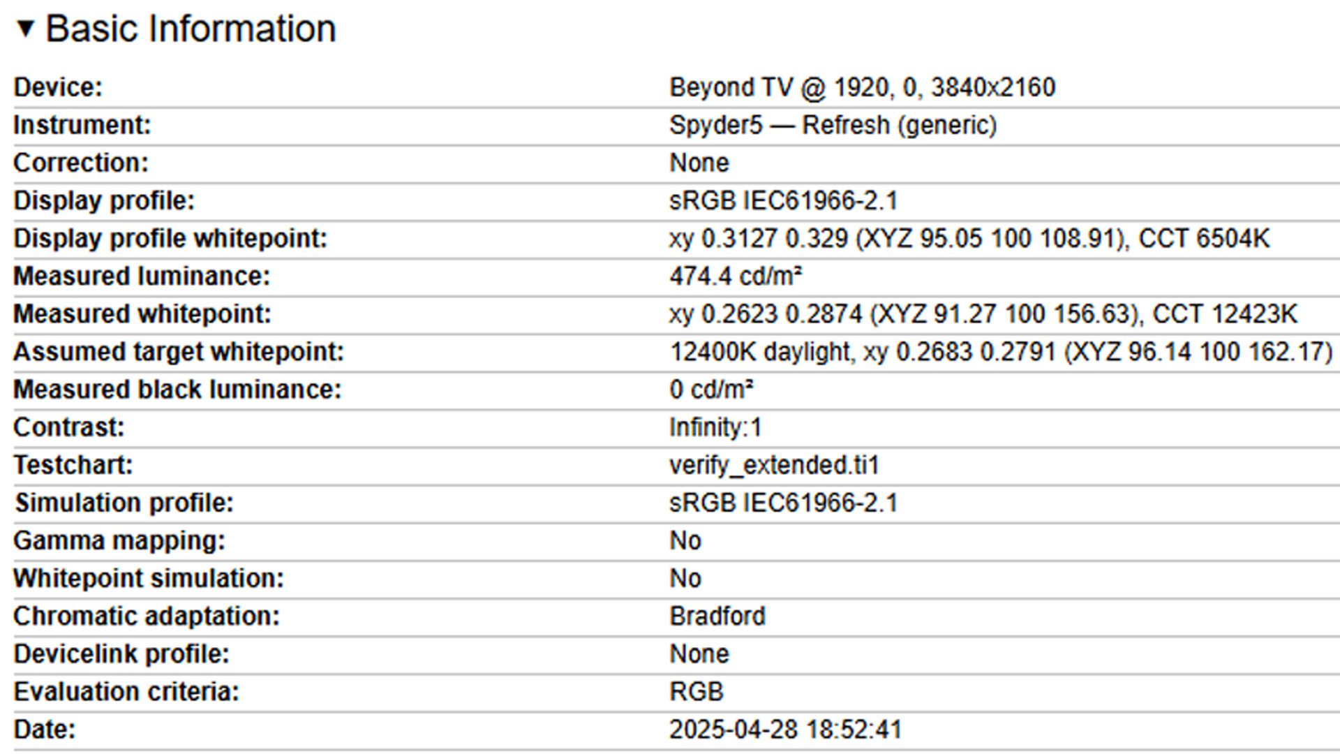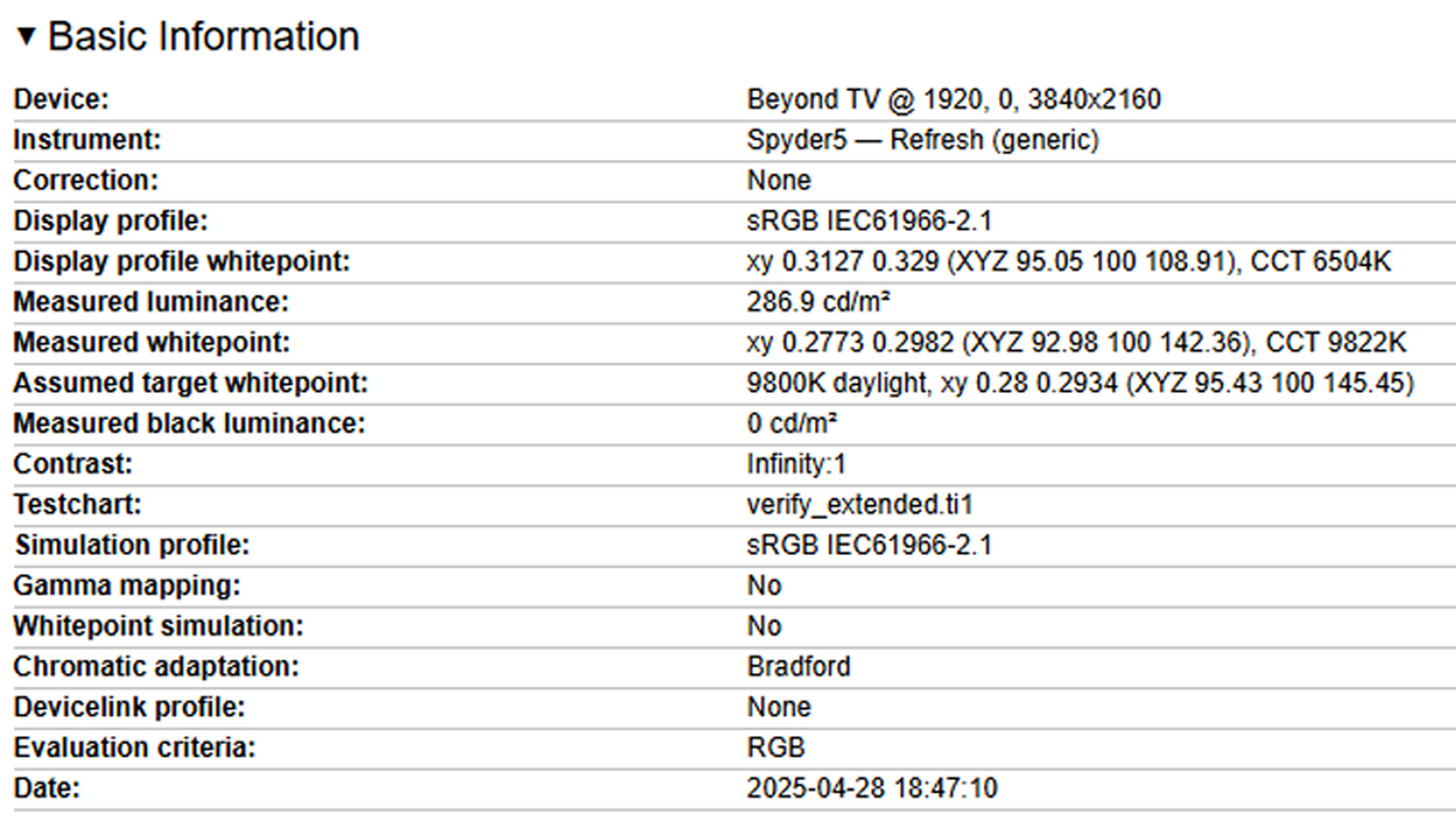 Nadszedł czas, aby przejść do najważniejszego, czyli testów matrycy. Te wykonałem za pomocą kolorymetru SpyderX 5 oraz programu DisplayCAL. Podstawowe testy zostały wykonane na fabrycznych ustawieniach telewizora w trybie standardowym, czyli dokładnie takim, jak w chwili, kiedy wyciągasz go z kartonu i stawiasz u siebie w domu. Nie omieszkałem jednak sprawdzić też, jak TCL 65C69K radzi sobie w predefiniowanych trybach.