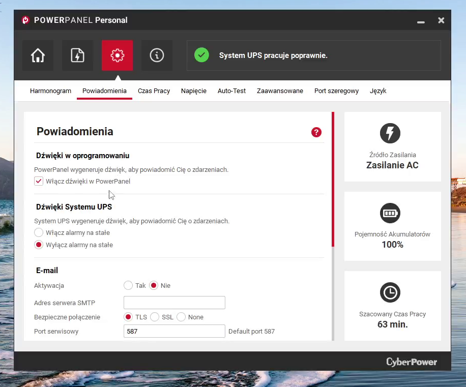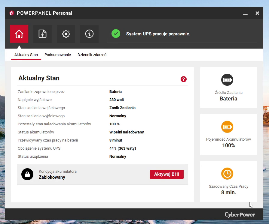 Jeżeli jednak chcemy wycisnąć z UPS-a maksimum możliwości, warto sięgnąć po PowerPanel Personal. Oprogramowanie producenta, dostępne również w pełnej, polskiej wersji językowej. To już nie tylko podstawowe „wyłącz mnie, gdy będzie krytycznie”, ale kompletny panel zarządzania, który daje dostęp do kilku istotnych funkcji.