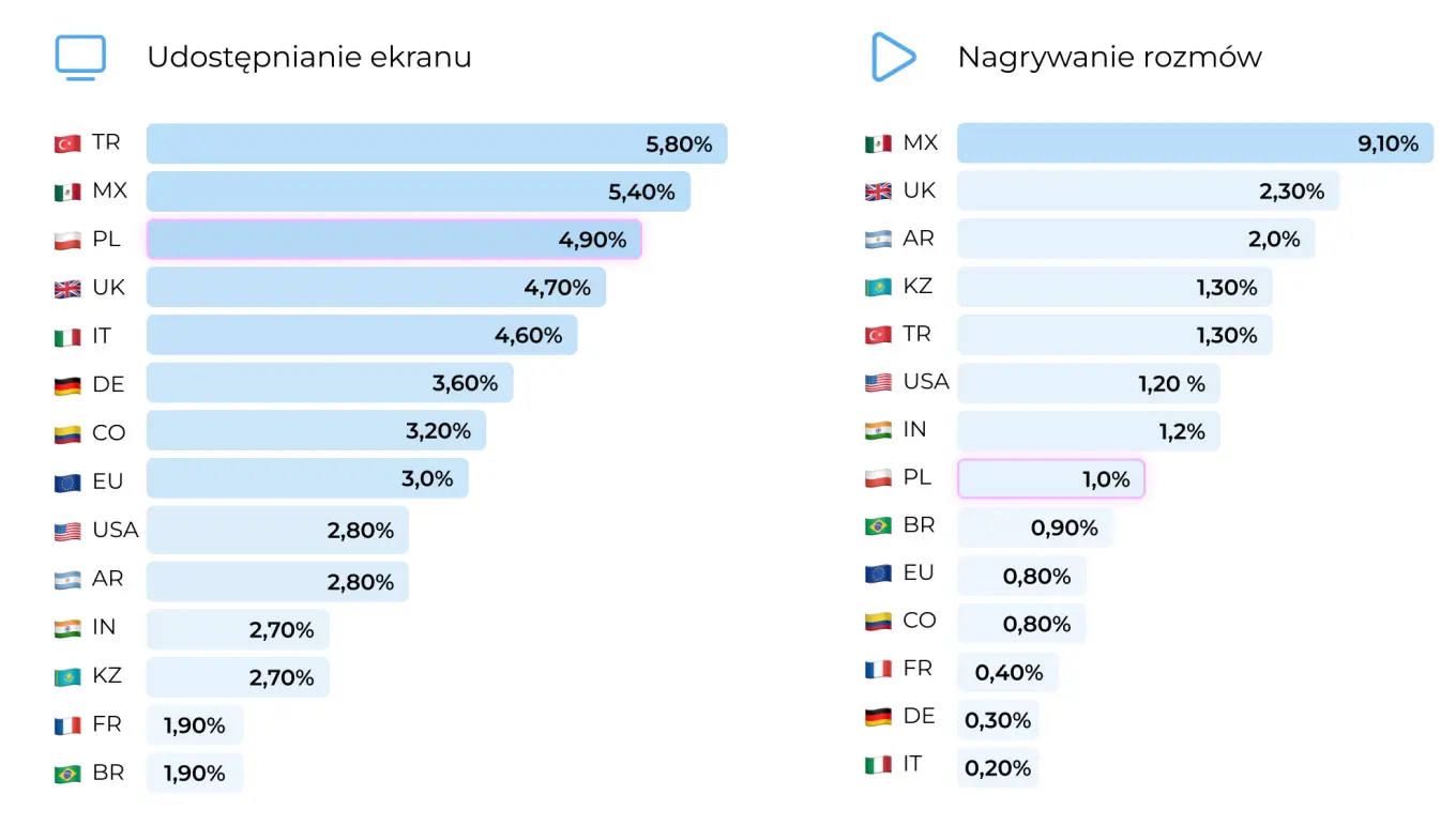 Polacy w świecie telekonferencji mają swoje unikalne podejście, które wyróżnia ich na tle innych narodowości. Według danych udostępnionych przez Bitrix24 coraz rzadziej wyłączamy kamerę podczas spotkań online, co świadczy o naszej rosnącej otwartości na bezpośrednią komunikację. Jednak wciąż cenimy sobie profesjonalizm – dbamy o schludne tło i odpowiedni strój, nawet pracując z domu. W porównaniu z innymi krajami jesteśmy mniej skłonni do udostępniania ekranu podczas spotkań, co może wynikać z obaw o prywatność lub techniczne aspekty.