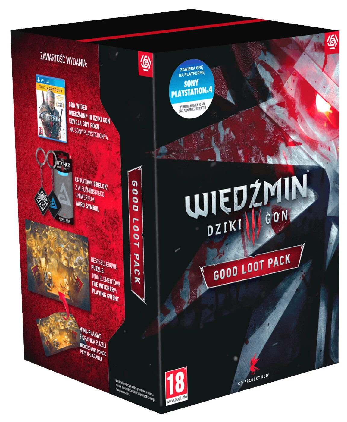 Wiedźmin 3 Good Loot Pack to ciekawy zestaw, który szczególnie spodoba się osobom, które nie ukończyły jeszcze gry Wiedźmin 3: Dziki Gon bądź dodatków do niej. Dlaczego? Otóż w skład tego atrakcyjne wycenionego zestawu wchodzi pudełkowa wersji gry Wiedźmin 3: Dziki Gon Edycja Gry Roku na PlayStation 4 (z darmową aktualizacją do wersji na PS5), 1000 elementowe puzzle The Witcher: Playing Gwent, mini-plakat oraz brelok z wiedźmińskiego uniwersum.